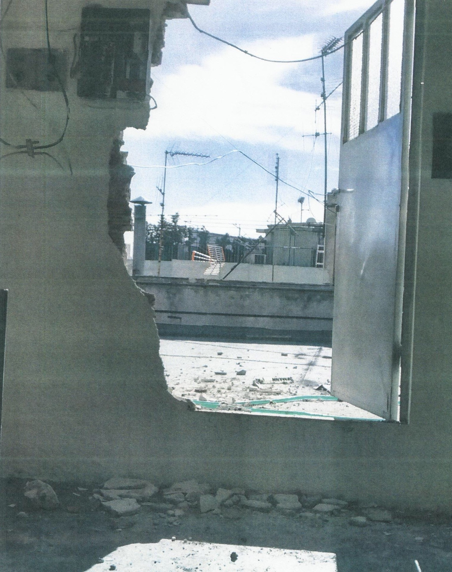 Λίγη ώρα αργότερα η αστυνομία έδωσε στη δημοσιότητα και φωτογραφίες, στις οποίες, σύμφωνα με την ΕΛ.ΑΣ., φαίνεται πως οι νεαροί είχαν ανοίξει τρύπα σε ταράτσα πολυκατοικίας για να βγουν έξω και να πετάξουν οτιδήποτε στην Αστυνομία.