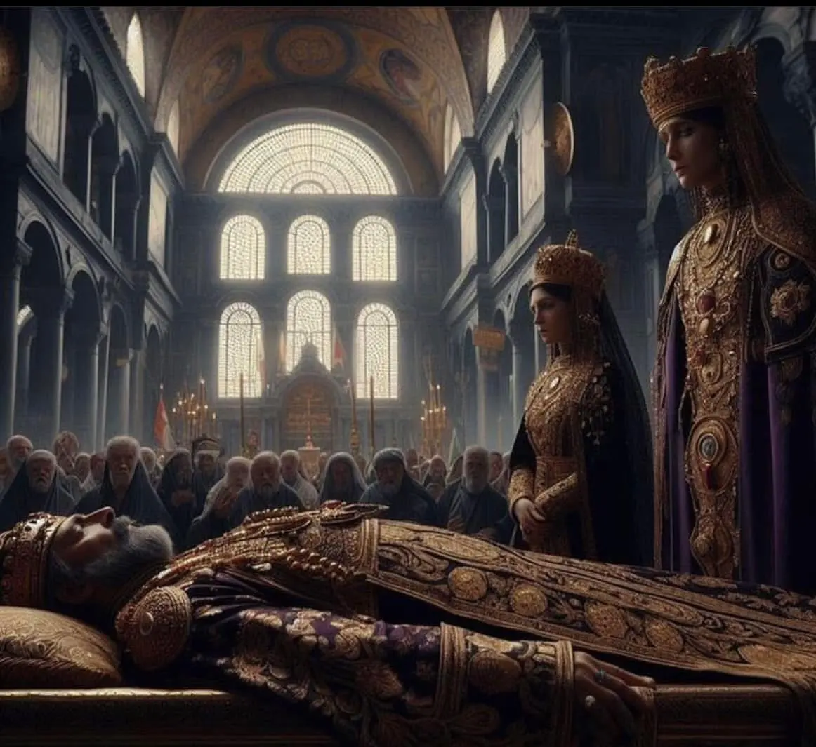 Τρεις μέρες έμεινε στο τρίκλινοι ντυμένος με την απλή στολή του στρατιώτη που φόραγε στις μάχες και, όταν την τέταρτη τον σήκωσαν σπαθάριοι, για να τον κηδέψουν, βόγκηξε όλη η Βασιλεύουσα.